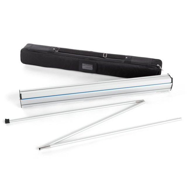 Rollup Budget-System aus Aluminium, mit bedrucktem Banner, 3-teiliger „Zeltstange“ und Tragetasche